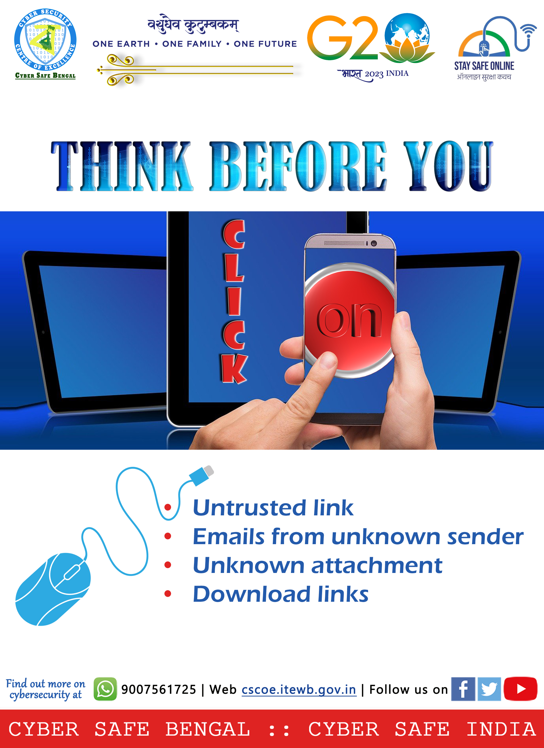 During India’s presidency of G20, the Ministry of Electronics and Information Technology (MeitY) is running a campaign titled ‘Stay Safe Online’ aimed at creating awareness among citizens including specially-abled persons to stay safe in an online world on the widespread use of social media platforms and rapid adoption of digital payments. As India is making significant efforts towards becoming a trillion-dollar digital economy, the campaign focuses on sensitizing users of all ages about online risk & safety measures and promoting cyber hygiene thereby reinforcing the cyber safety of citizens.